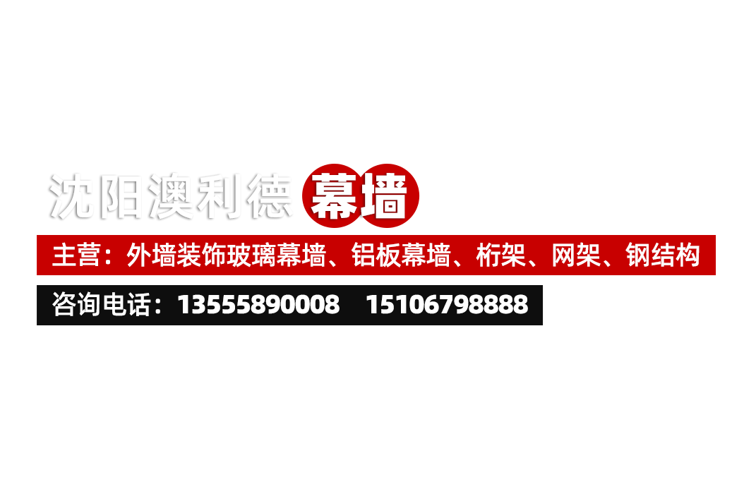 沈阳澳利德装饰工程有限公司主营建筑幕墙包括玻璃幕墙、铝板幕墙、石材幕墙、陶土板幕墙、全玻璃幕墙、钢结构点式幕墙、节能幕墙、断桥节能门窗、钢结构采光顶、网架采光顶、屋面铝镁锰板、钢结构加固维修,不锈钢工程铝合金门窗等,现在拥有专业的施工团队及雄厚的技术力量,从设计、生产、安装、到售后是辽宁一家自己组织施工的幕墙公司。